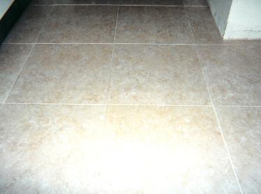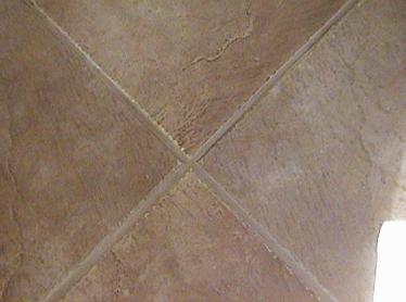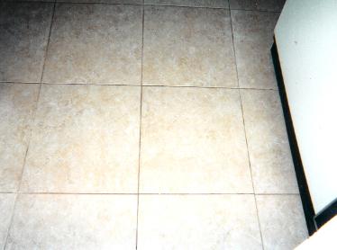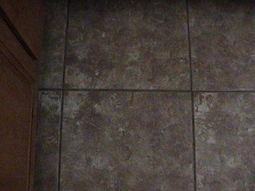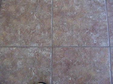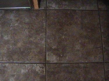 TILE-AFTER THIS TILE CHANGED COLOR DRAMATICALLY AFTER IT WAS CLEANED. THE GROUT LINES WENT FROM A DARK BROWN/BLACK TO A LIGHT GREY. ALSO THE LOW-LYING AREAS WERE FREED OF SOIL. |