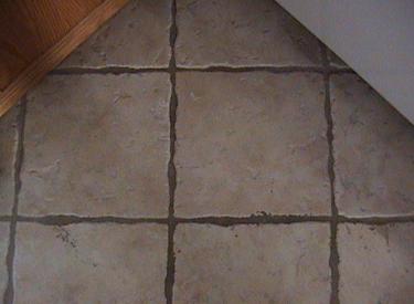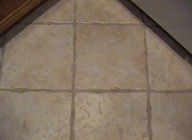 TILE-BEFORE This is an example of tile that has many recesses. One of the cleaning tools we use reaches deep into the pits and forces out the soil. |